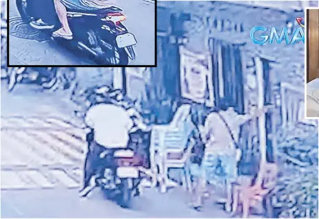 Closed-circuit television footage showed two men on a motorcycle stopping in front of the barangay hall. The backrider drew a gun and shot Camacho through the hall’s glass door before returning to his companion and speeding away.